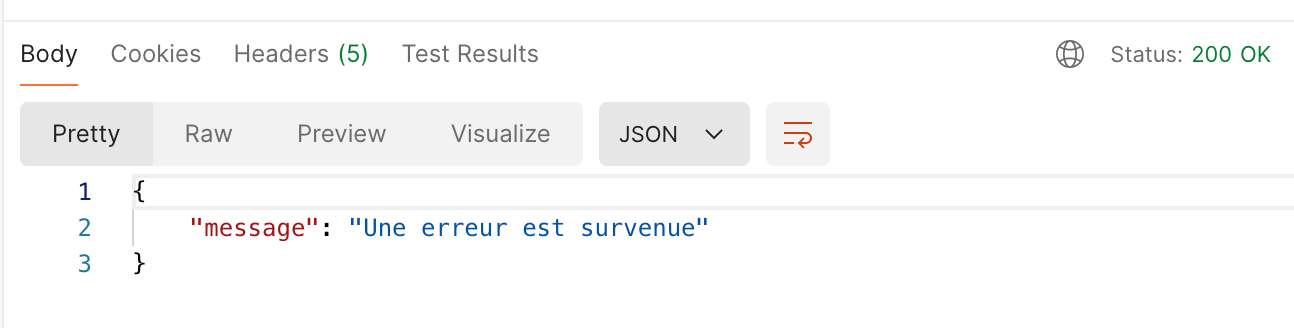 Vous comprenez donc que pour une réponse avec un code de retour 200, je ne m'attend pas à recevoir un message d'erreur contrairement à ce que nous avons eu plus haut.