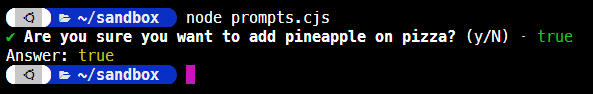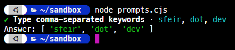 Pour lancer le fichier, vous pouvez exécuter la commande node prompts.cjs dans votre terminal. Naviguer dans les prompts est instinctif, avec des contrôles qui tirent parti des touches directionnelles et Entrée, des commandes familières.
