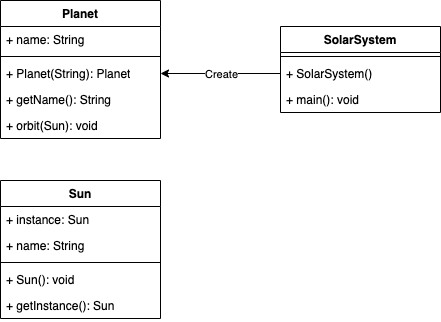 L'utilisation du Singleton ici garantit qu'il n'y a qu'une seule instance du soleil dans tout le système solaire.