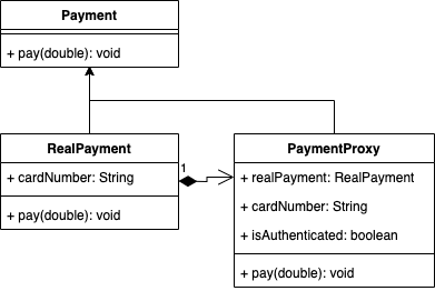 Payment payment1 = new PaymentProxy("1111-1111-1111-1111", true);