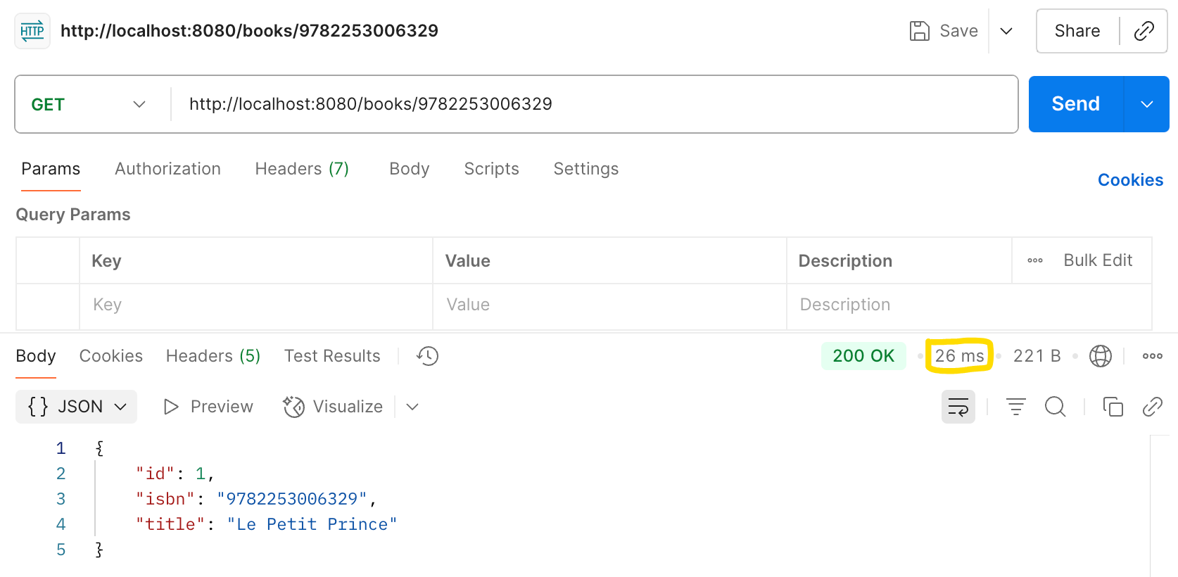 2025-08-21T12:51:54.452+02:00 INFO 73577 --- [nio-8080-exec-1] [ ] fr.eletutour.cache.service.BookService : Book : Book{id=1, isbn='9782253006329', title='Le Petit Prince'}Lors du prochain appel, nous ne rentrerons même pas dans notre méthode, et irons chercher directement l'information souhaitée depuis le cache