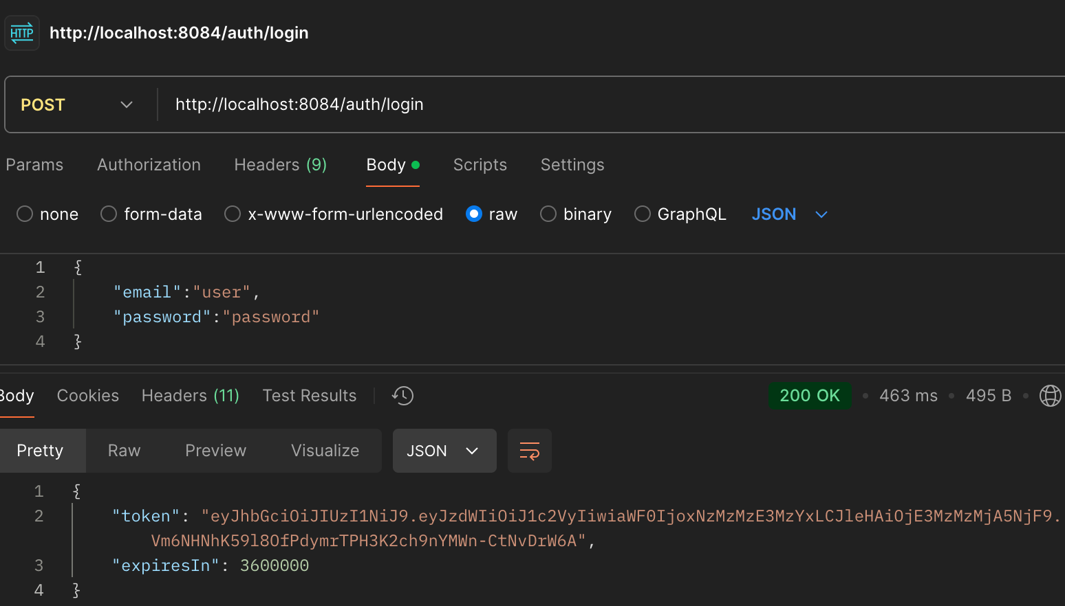 J'ai préalablement créé un user via notre API /signup, puis l'ai fait se logger via /login afin de récupérer son token