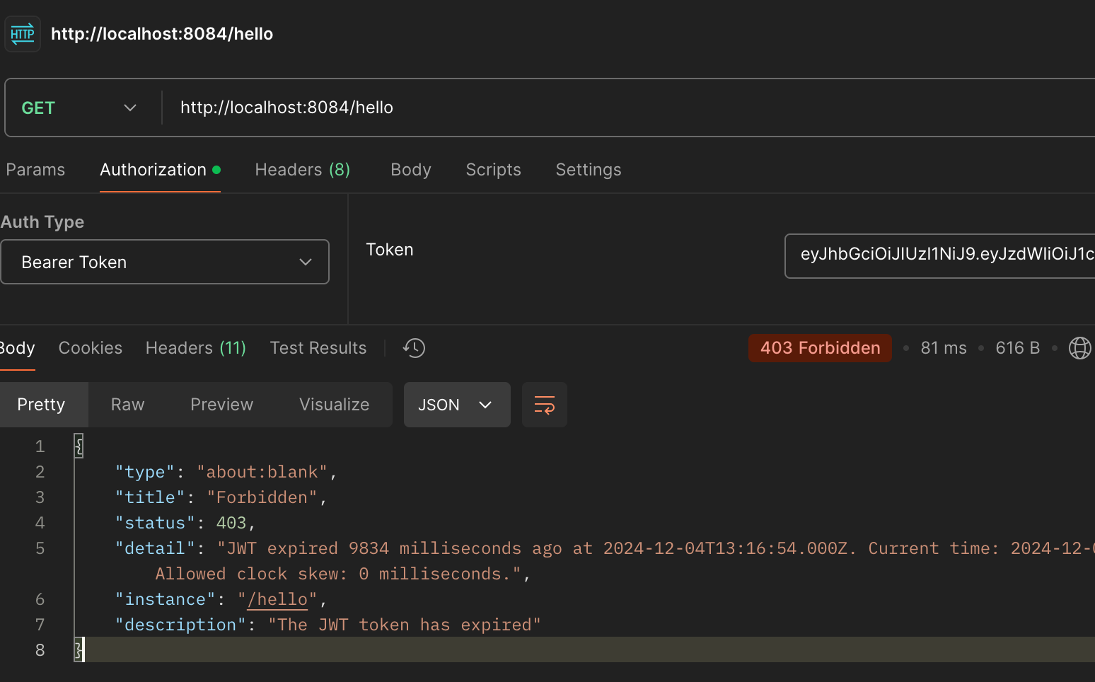 case ExpiredJwtException e -> createProblemDetail(403, e.getMessage(), "The JWT token has expired");