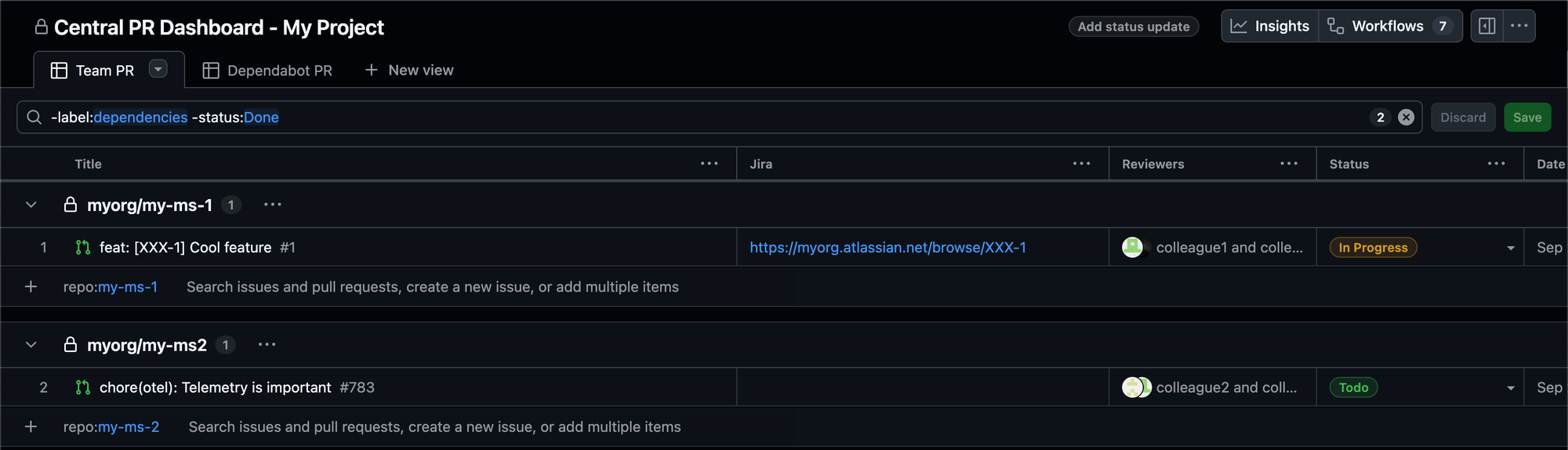 - Groupez les PR par service ou par feature (possible de faire une vue pour chaque !)