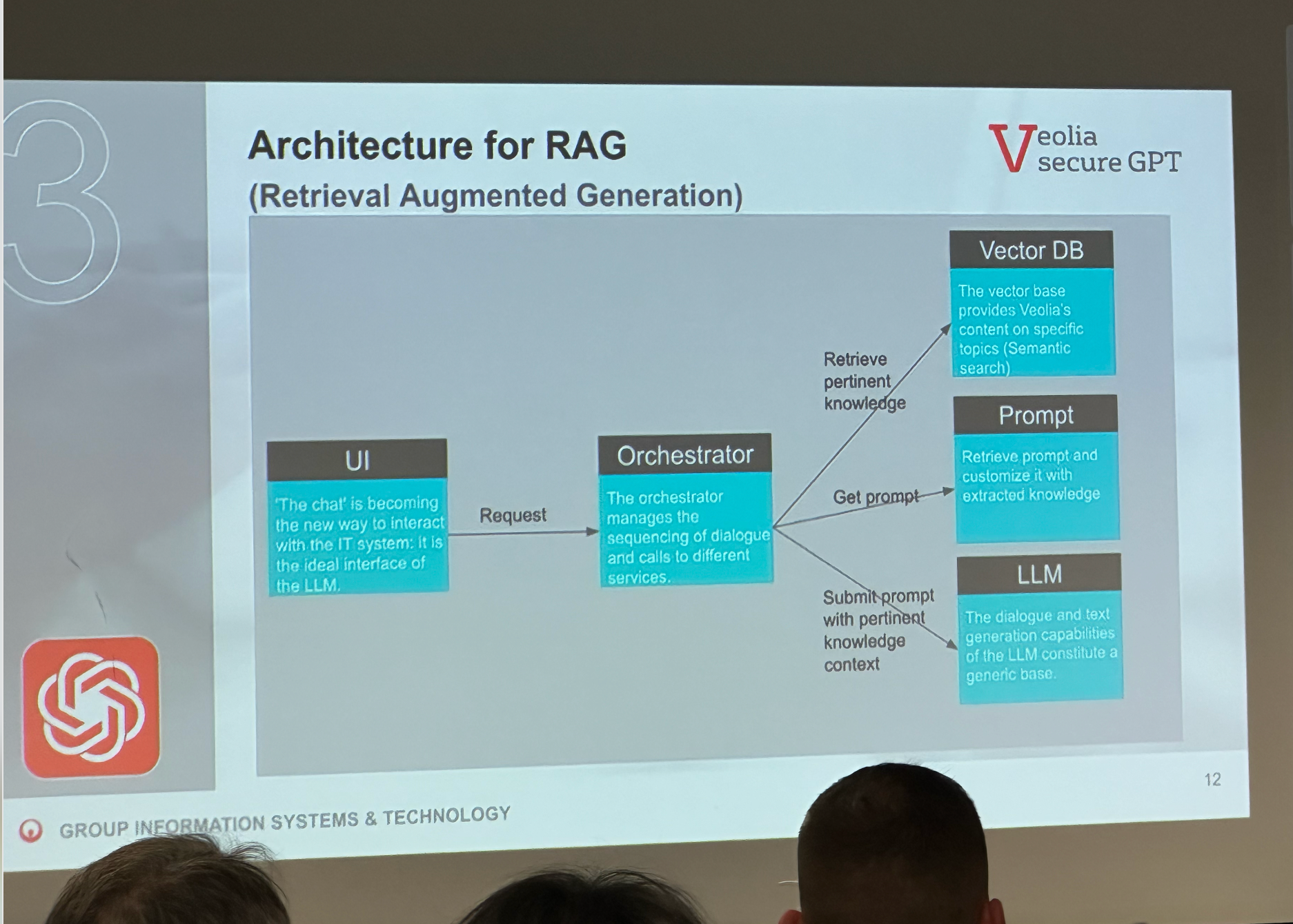 Fouad Maach, Head of Architecture and Industrialization for Veolia Group IS&T et Directeur Technique de Veolia Secure GPT est venu partager son expérience. Les défis rencontrés et les avantages obtenus sont nombreux, et la salle déborde de questions.