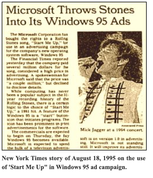 La légende raconte que Bill Gates a dépensé des millions pour convaincre les Rolling Stones de laisser Microsoft utiliser "Start Me Up" comme hymne pour le lancement de Windows 95. Cet achat record, partie d'une campagne de 200 millions de dollars, symbolise l'ambition de Gates de marquer le coup pour ce qui est devenu un moment clé de l'histoire de l'informatique.