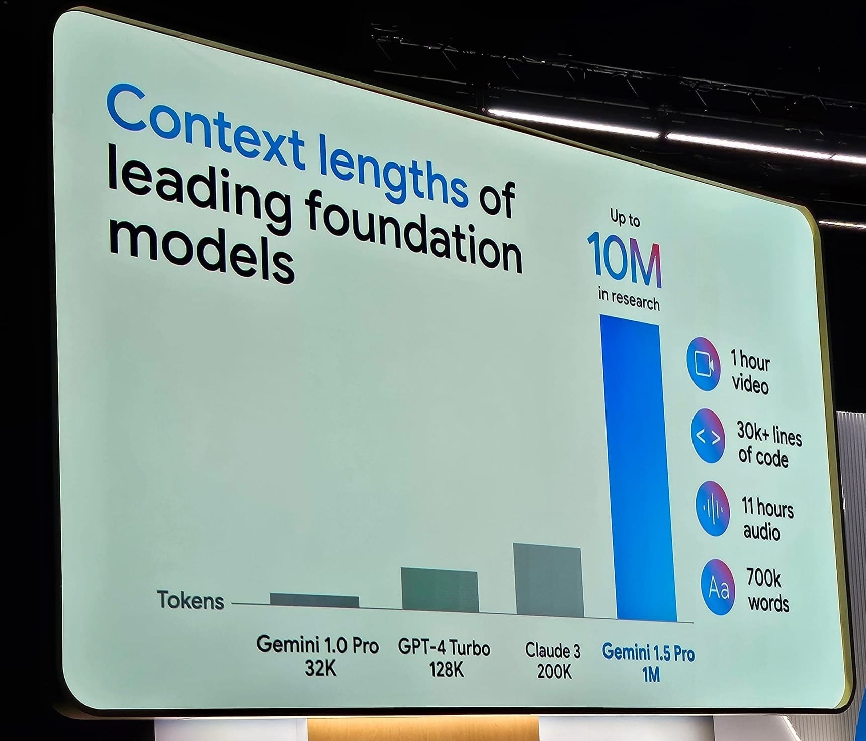- Grâce à Gemini 1.5 Pro qui prend en compte jusqu'à 1M de tokens pour la longueur d’un contexte, Gemini Code Assist peut ainsi ingérer jusqu’à ~30k lignes de code autant dire l'entièreté d’un projet.
