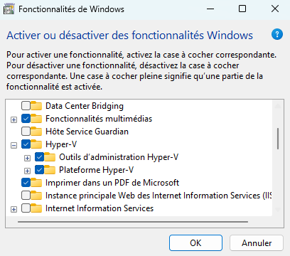 Cependant, pour ce projet, nous avons opté pour Hyper-V, l'hyperviseur natif de Windows, qui présente plusieurs avantages :