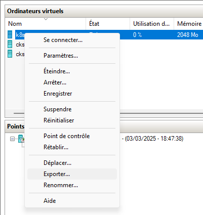Exporter la VM k8s-cp