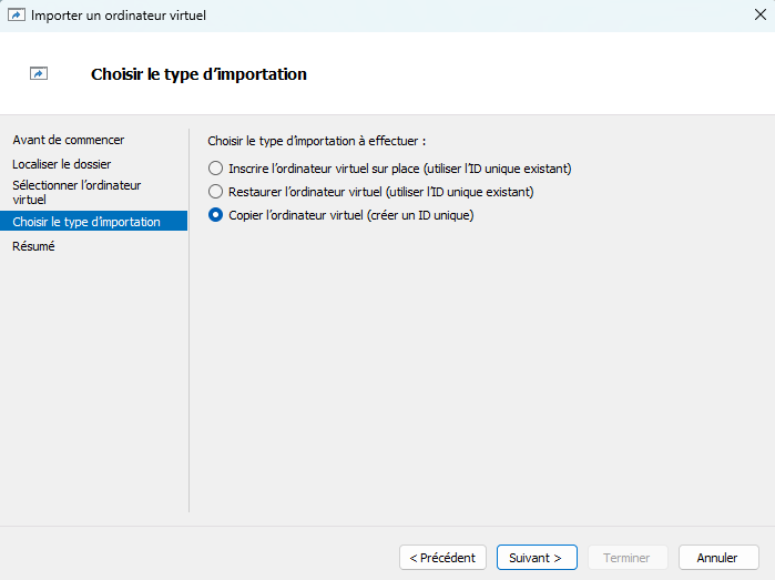 Sur l'écran "Choisir le type d'installation", sélectionnez "Copier l'ordinateur virtuel"