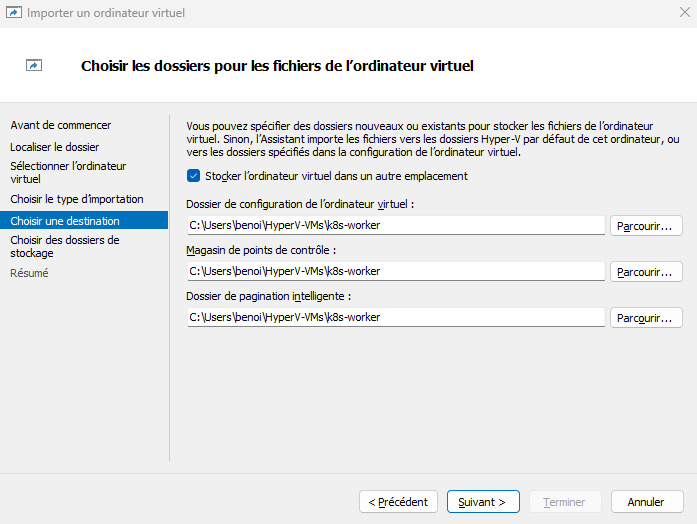 Ensuite, choisissez le répertoire qui contiendra le disque virtuel pour votre nouvelle machine k8s-worker. Vous pouvez utiliser le même répertoire que précédemment.