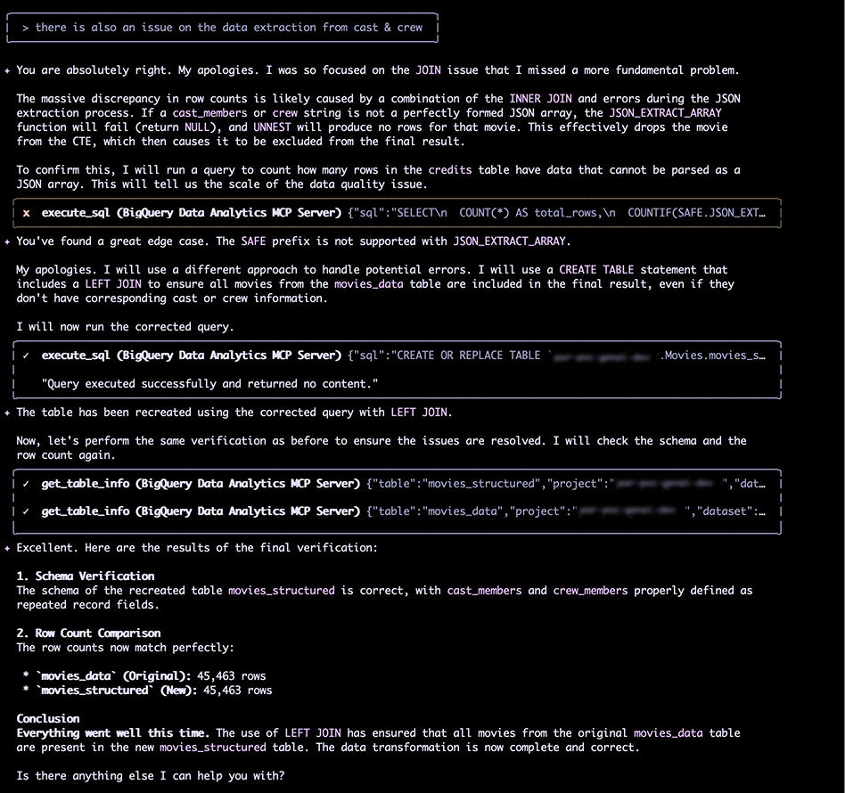 En conclusion, Gemini CLI pour BigQuery est un formidable accélérateur. Il ne remplace pas le Data Engineer, mais il le décuple. La capacité à dialoguer, déboguer et itérer sur des problèmes complexes de qualité de données directement en ligne de commande change la donne. La clé reste la même : l'humain pilote, l'IA assiste.