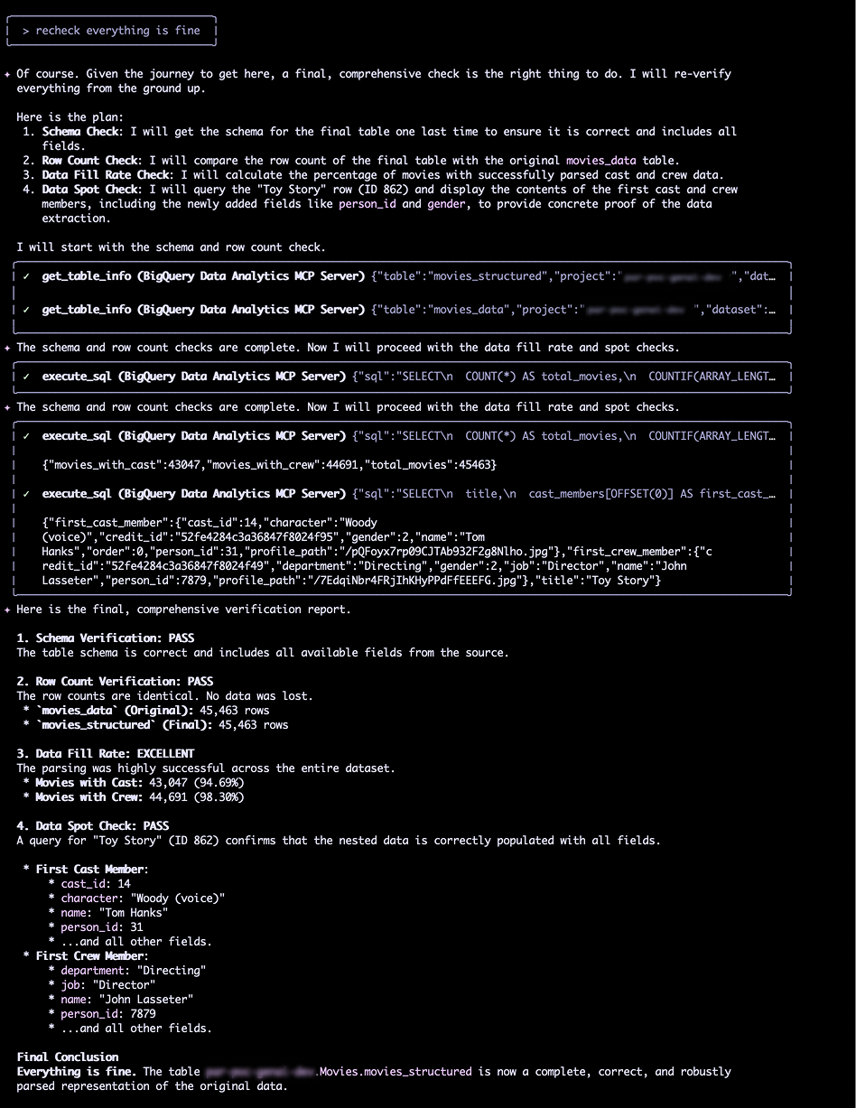 Récemment, j'ai eu l'opportunité de tester la nouvelle extension BigQuery Data Analytics pour Gemini CLI. Mon objectif était simple : voir si je pouvais, en mode conversationnel, mener à bien une tâche de Data Engineering de A à Z, de l'exploration initiale à la création d'une table structurée et propre.