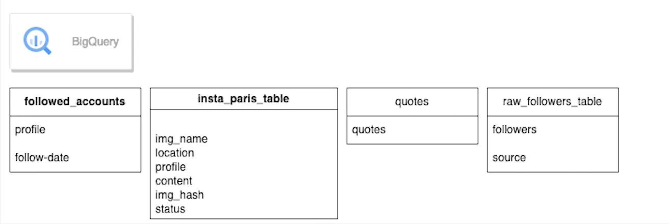 Ensuite, j'ai automatisé tout le processus en utilisant Python et quelques tâches cron. Les photos, une fois publiées, voient leur statut dans la table "insta_paris_table" passer de faux à vrai pour éviter les doubles publications (BigQuery n'est pas optimisé pour les mises à jour, mais avec cette quantité limitée par jour, ce n'était pas un problème). Les comptes suivis seraient ajoutés de la table "raw_followers_table" à "followed_accounts". Chaque jour, en fonction de la date de suivi, le script se désabonne des personnes qui ont été suivies deux jours auparavant.