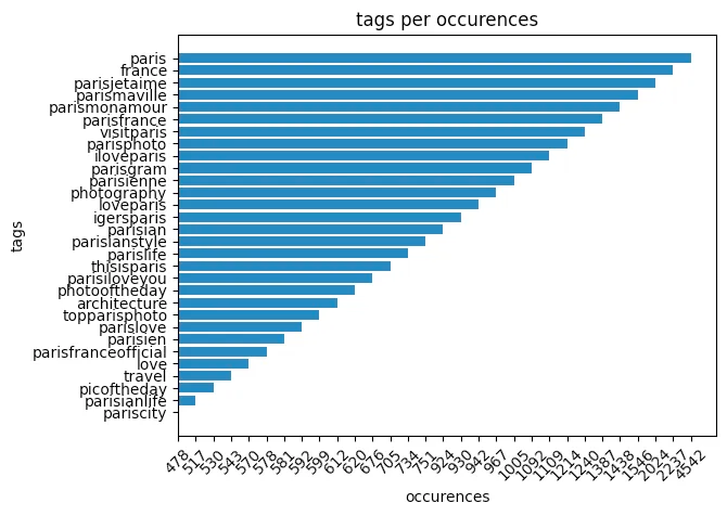 Puis, j'ai extrait les 30 tags les plus utilisés dans leurs photos parisiennes.