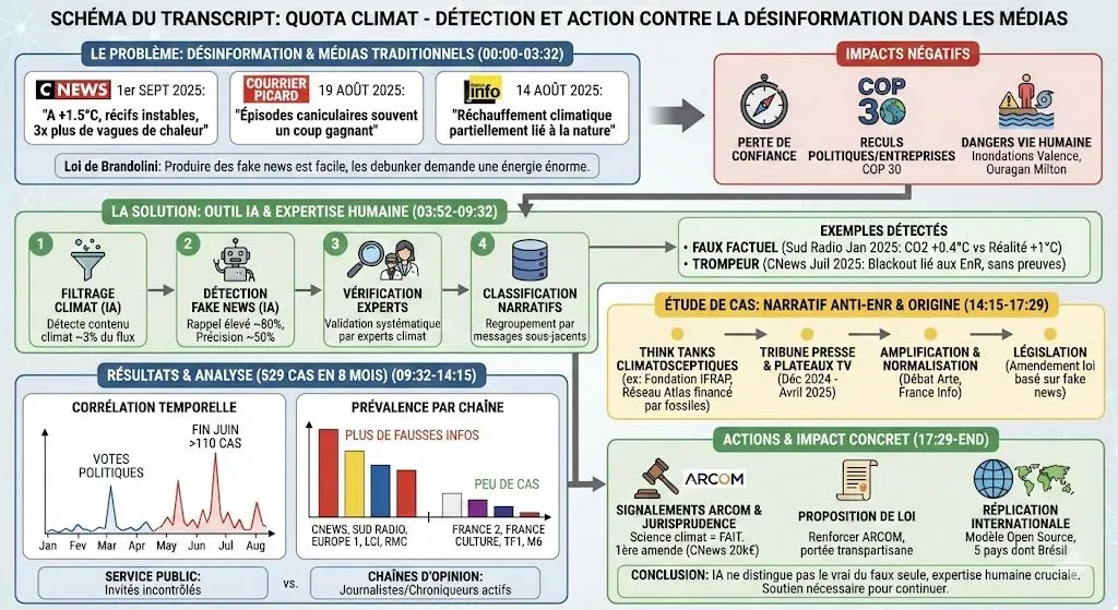 J'ai découvert l'initiative incroyable de Quota Climat, Science Feedback et Data For Good grâce à Noémie Coget sur la scène du Tech Rocks Summit 2025. Une initiative brillante pour détecter la désinformation climatique à grande échelle. Car si l'humain est faillible, la donnée, elle, peut objectiver ce ressenti.