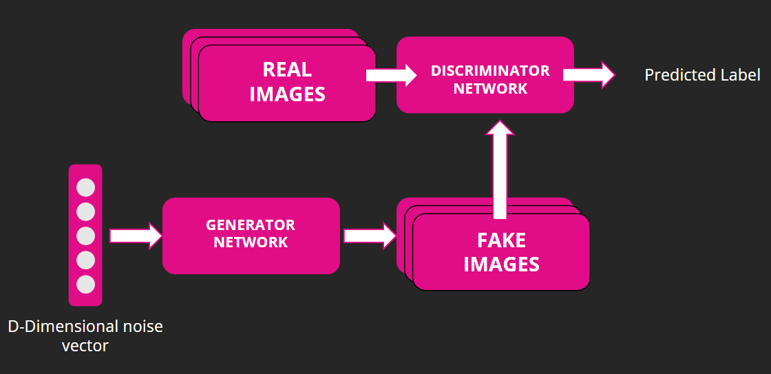 Le générateur crée de nouvelles données en partant d'un bruit de départ (un vecteur aléatoire). Il essaie d'apprendre à générer des données qui ressemblent aux données d'entraînement. Le discriminateur, pour sa part, est un classificateur binaire qui permet de déterminer si une donnée est réelle ou artificielle (c'est-à-dire générée par le générateur). Le but du discriminateur est d'apprendre à classifier les données avec précision en fonction de leur authenticité.