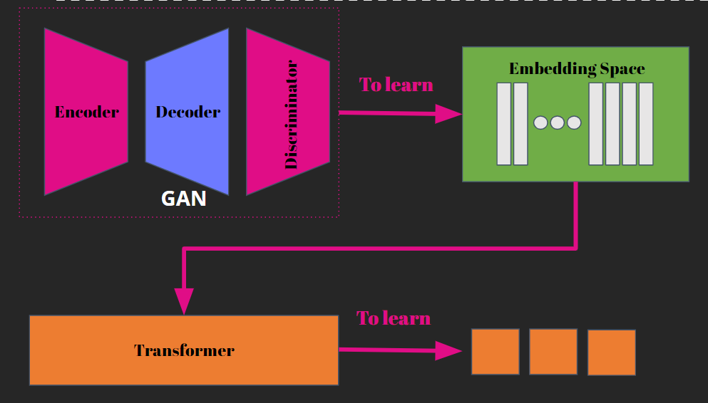 Pour conclure cette petite digression dans l'histoire des modèles génératifs, évoquons le modèle VQ-GAN. Cette approche combine la génération de l'espace latent avec les principes du GAN, ce qui permet de générer des images de haute qualité tout en préservant une diversité importante.