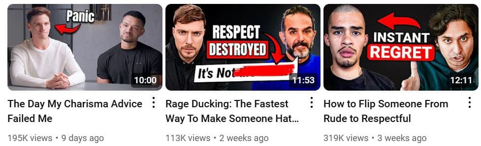 Charisma on Command est une chaîne YouTube proposant des vidéos de 10 à 15 minutes, conçues pour développer le charisme et la confiance en soi. Chaque vidéo se concentre sur un aspect précis : comment répondre à une attaque verbale, capter l’attention en conversation, raconter une histoire de manière captivante, etc.