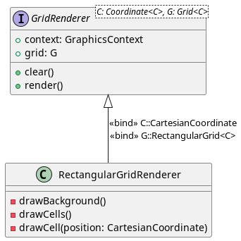 Nous introduisons maintenant l'interface GridRenderer qui dessine une grille sur le contexte d'un Canvas. Elle propose deux méthodes clear() et render() qui doivent généralement être appelées alternativement.