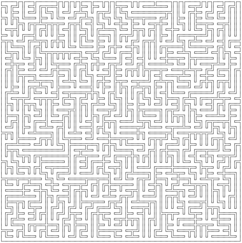 Pour finir, quelques exemples de labyrinthes générés avec l'application dans son état actuel. Je vous laisse deviner avec quel algorithme chacun a été fait 😎