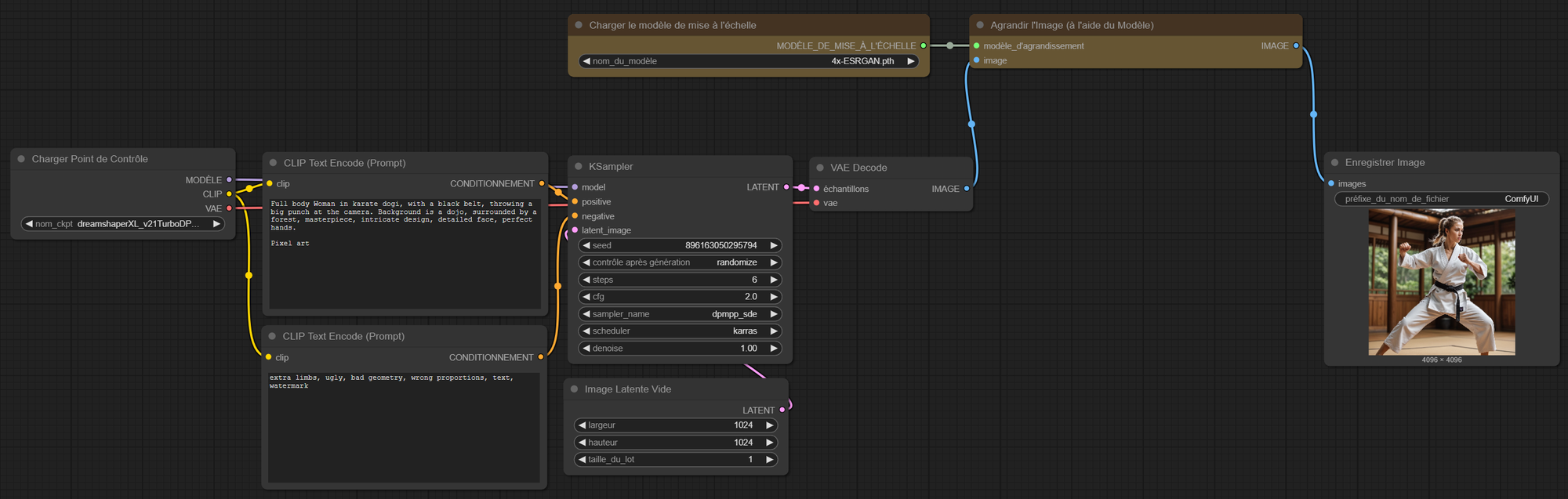 Dernière étape : l’activation du LoRA. Comme expliqué précédemment, il suffit d’ajouter le trigger word dans le prompt positive pour que cela fonctionne ! :).