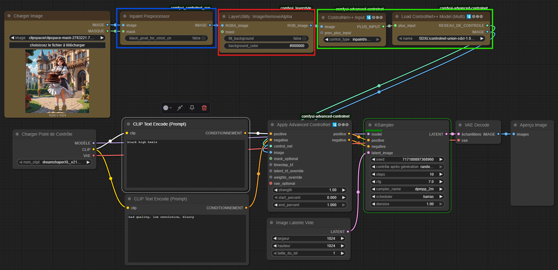 En vert : On charge le controlnet dont on a besoin, ici le controlnet++promax pour sdxl