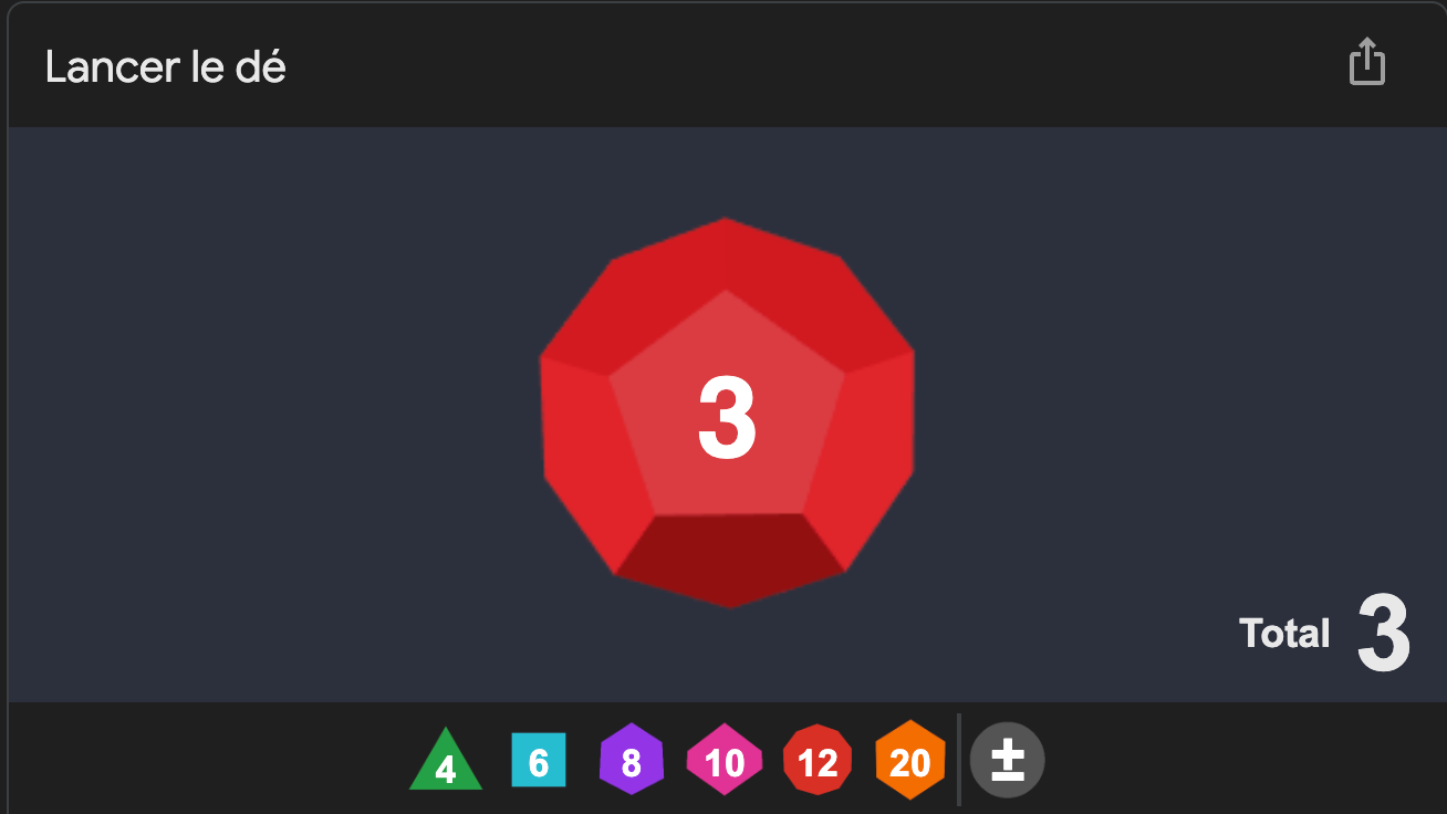Après un lancer de dé à 12 faces, voici le problème tiré au sort