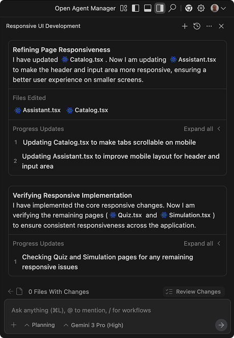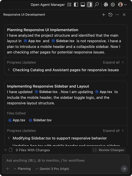 J'ai mis l'outil à l'épreuve sur une tâche classique mais fastidieuse : rendre une interface utilisateur (UI) entièrement responsive. Voici mon retour d'expérience sur Antigravity et la puissance de Gemini 3 Pro.