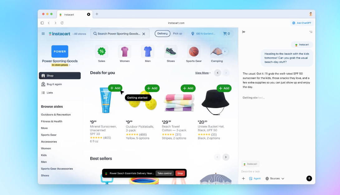 Aux États-Unis, Instant Checkout fait déjà passer à l’acte dans ChatGPT : Etsy est opérationnel, Walmart annoncé, Shopify en approche. Atlas en hérite mécaniquement, puisqu’il embarque ChatGPT au cœur du navigateur.
