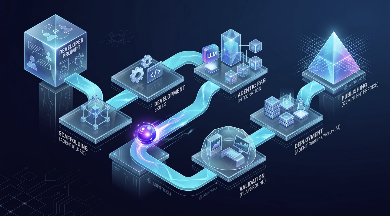Construire un agent ADK, le tester, le déployer sur Agent Runtime, puis l'enregistrer dans Gemini Enterprise : c'était déjà rationalisé avec l'Agent Starter Pack. Mais Google vient de monter d'un cran avec agents-cli (docs), un outil qui transforme votre coding agent (Gemini CLI, Claude Code, Cursor…) en véritable expert ADK grâce à un système de skills.