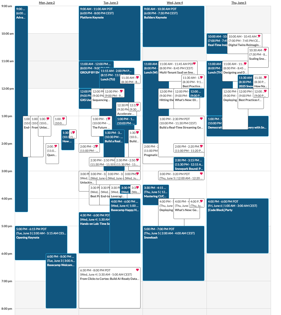 Le Snowflake Summit, c’est un véritable marathon : 4 jours, plus de 500 sessions, et 190 partenaires prêts à vous impressionner. De quoi donner envie de tout voir, tout faire… mais attention, c’est aussi le meilleur moyen de finir épuisé, la tête pleine, et de ne rien retenir.