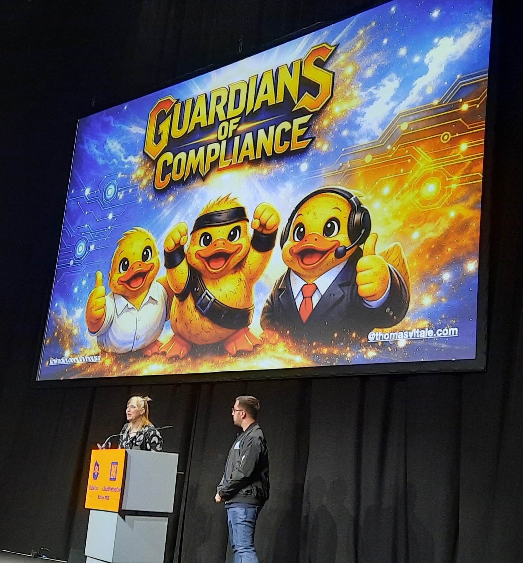 Ce que j'ai particulièrement apprécié, c'est l'énergie et le storytelling des deux speakers : Alexandra incarne une développeuse enthousiaste, pressée de montrer sa toute nouvelle feature au monde entier, tandis que Thomas joue les gardiens vigilants, là pour veiller au grain et assurer la conformité. Un duo savoureux qui rend le sujet aussi vivant qu'instructif ! 🎭