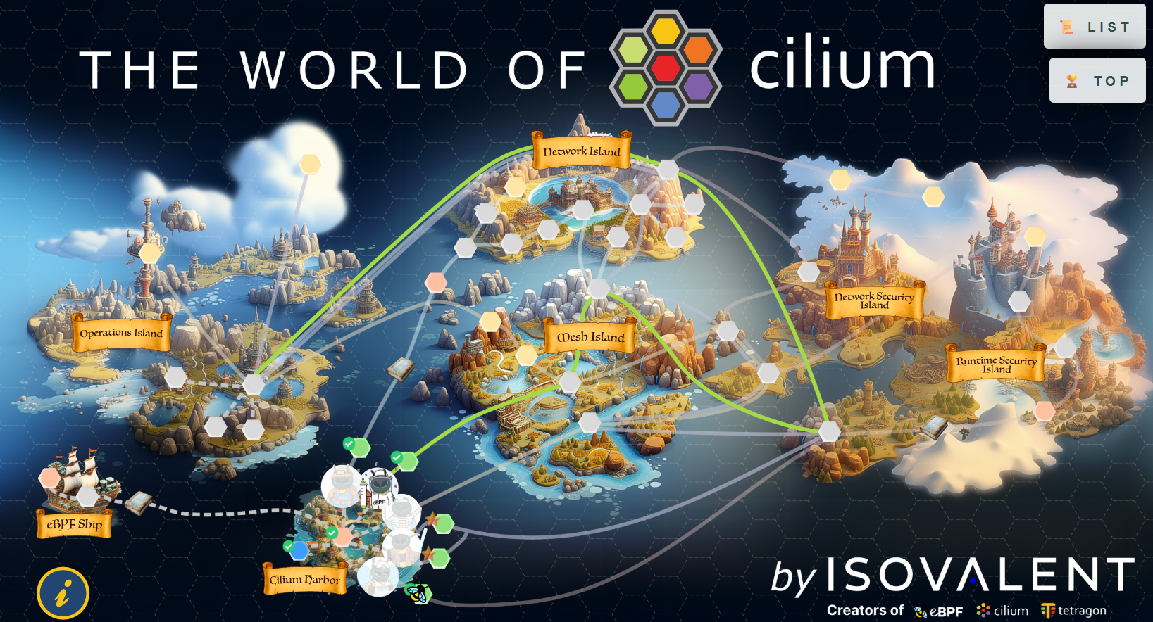 L'année précédente j'avais participé à un lab autour de Falco, et cette année, c'est Isovalent qui propose un challenge autour de Cilium, le plugin réseau (CNI) de Kubernetes. Le principe : une série de 30 labs à enchaîner, et il faut en compléter le plus possible !