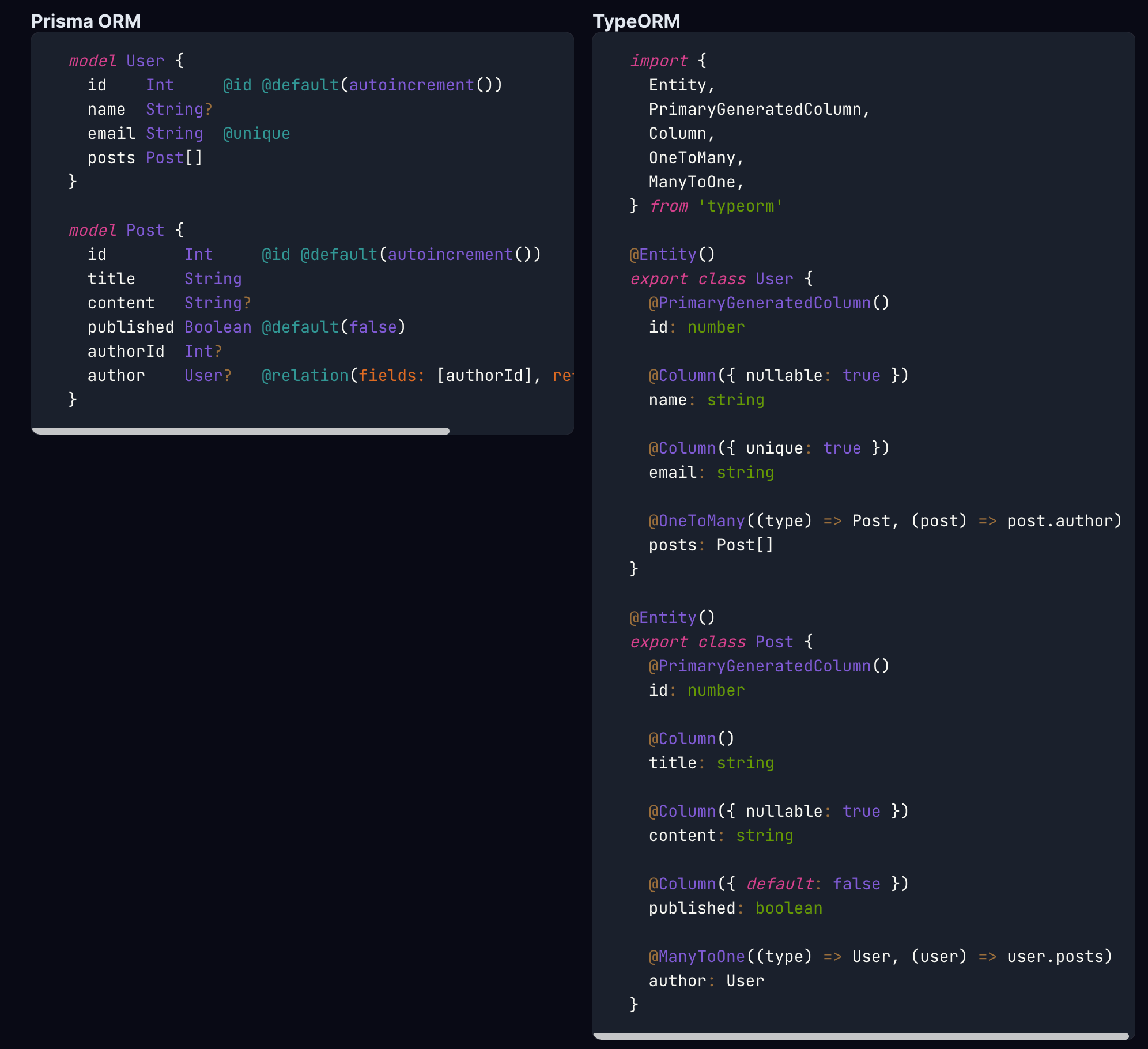 Comparaison : Prisma vs TypeORM (ou un autre ORM)