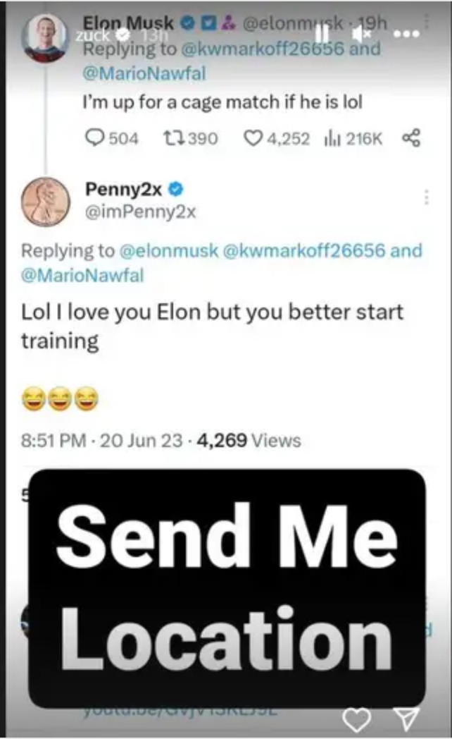 L'idée du combat a pris une tournure concrète lorsque Musk a suggéré le lieu de l'affrontement : "Vegas Octagon". Pour les amateurs de MMA, cette appellation mythique ne laisse aucun doute : il s'agit de la célèbre salle de combat située à Las Vegas, où se déroulent les prestigieux combats de l'Ultimate Fighting Championship (UFC). Une altercation indéniablement plus élégante que celle qui a éclaté entre les rappeurs Booba et Kaaris à l'aéroport d'Orly, le 1er août 2018 !